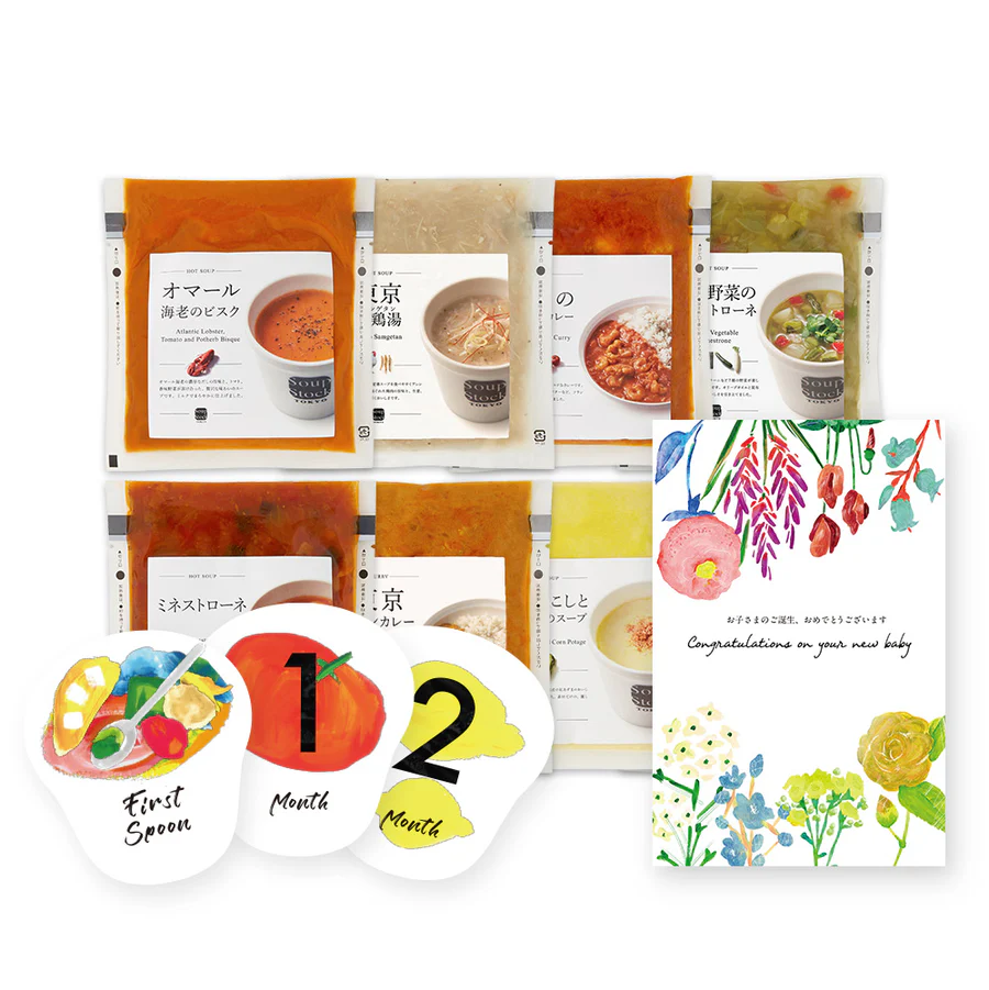 - 商品の魅力:食べるスープの専門店Soup Stock Tokyoには、実際に同社で働くママ・パパ社員が厳選した、出産前後の女性に向けた専用のギフトセットがあります。オマール海老のビスクや参鶏湯、生姜入り和風スープなど、自分では作るのが難しいけれど栄養価の高いメニューが冷凍パックになっています。