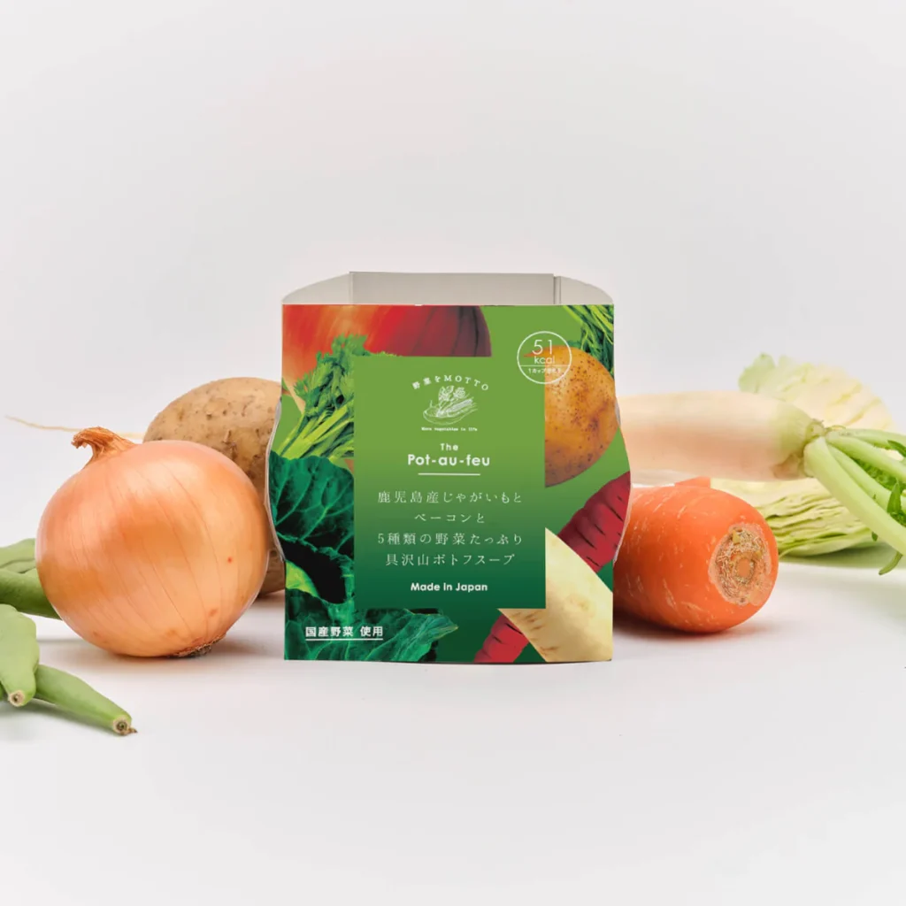 - 商品の魅力:国産野菜を贅沢に使用したスープで、最大の特徴は「常温保存可能」かつ「カップのままレンジで1分」という手軽さです。